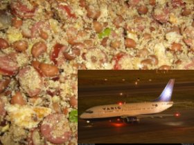Nem na única vez que viajei de primeira classe (cortezia de uma aeromoça que foi com minha cara) me serviram feijão tropeiro :)